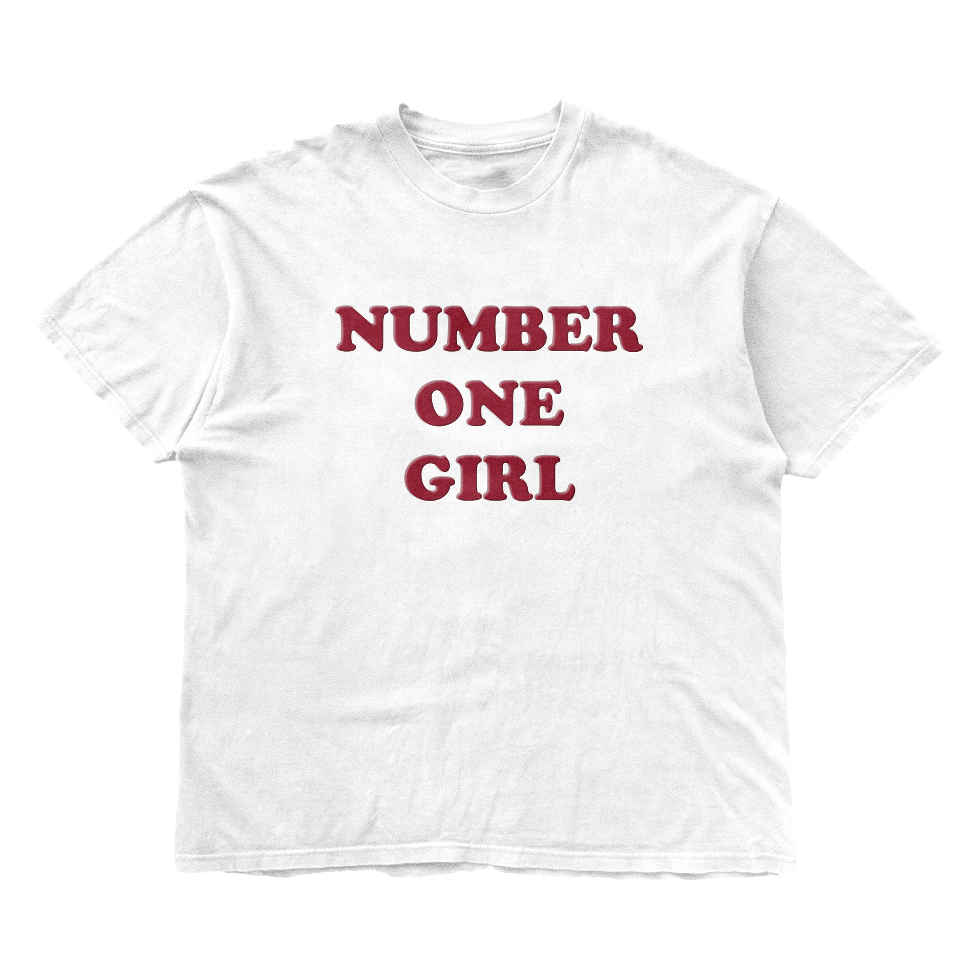 number one girl t-shirt printed with puff print lettering on a relaxed fit, garment dyed white t-shirt. 6.1oz 100% cotton.