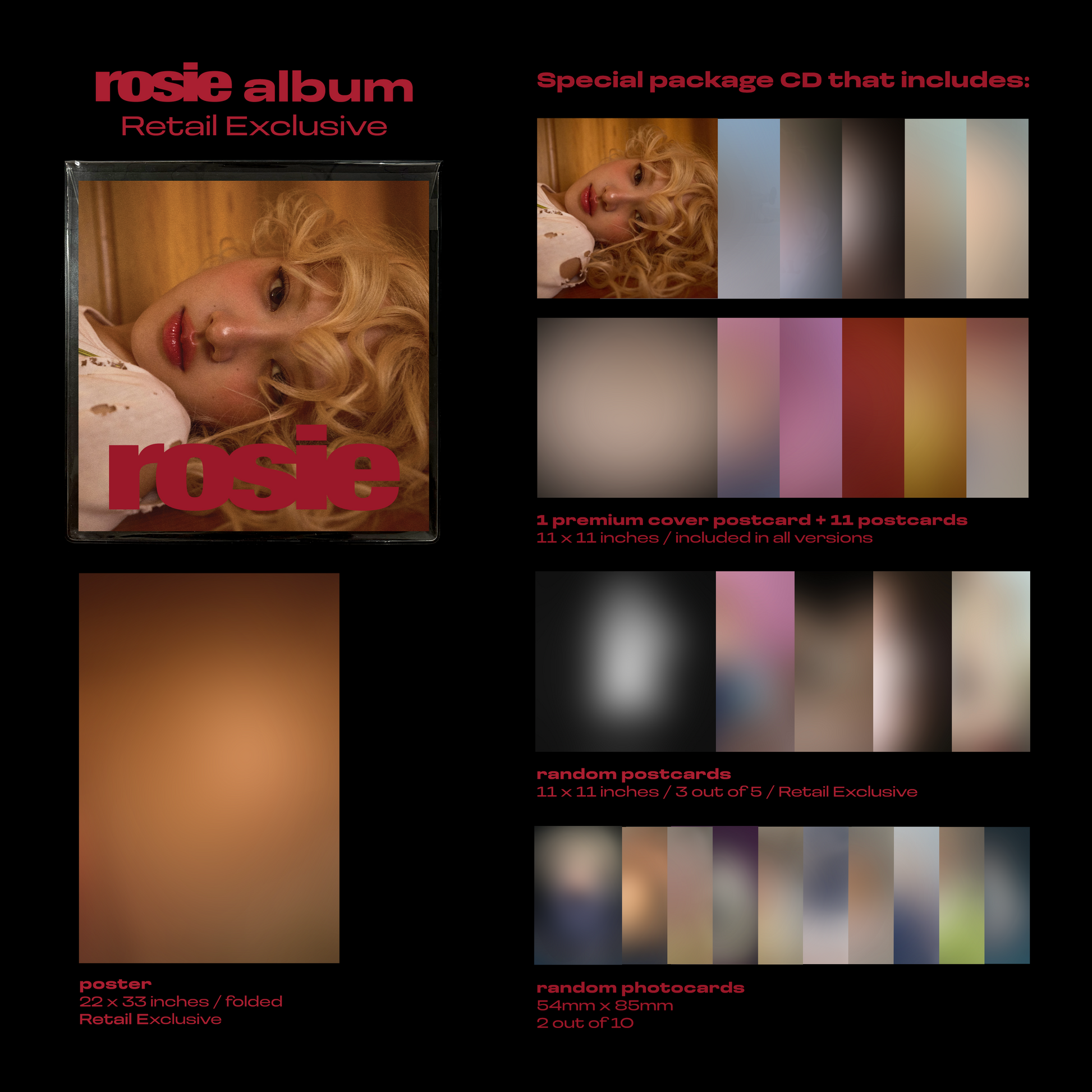 - three out of five additional postcards sized 11”x11” (retail exclusive photos)